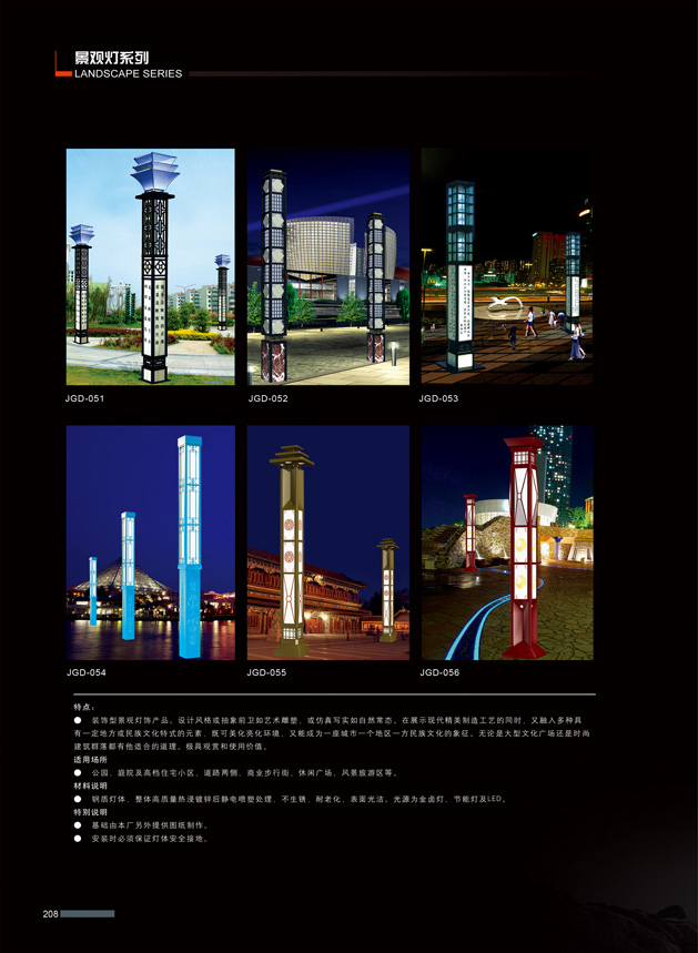 主要的产品有道路灯系列、太阳能灯、高杆灯、中华灯、景观灯、庭院灯、仿古灯、草坪灯等...